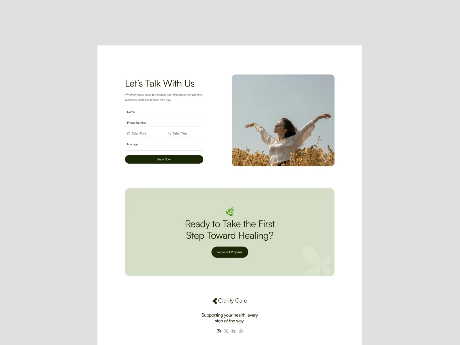 Clarity-Care is a website concept designed to present a modern mental health or wellness practice online. It features a calming visual style, clear service breakdowns, practitioner profiles, FAQs, and an appointment-focused layout that builds trust and encourages outreach.
