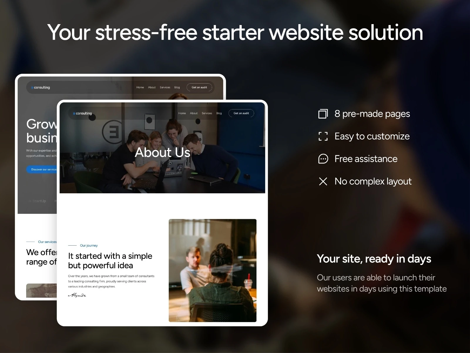 Consulting is a website concept created to showcase a modern consulting or professional services brand. It features a strong hero section, clear positioning, credibility-focused layout, and lead-ready structure designed to convert interest into inquiries.
